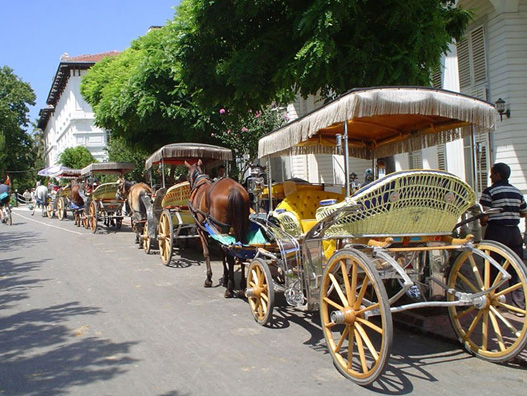 Tour es on with riding on a horse carriage to trip around the island before lunch time.